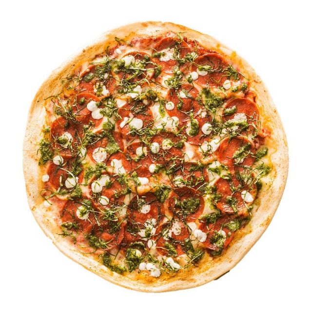 - عناصر: سس گوجه فرنگی ، موزارلا ، پارمسان ، بیکن ، ژامبون ، ریحان ، روغن زیتون فوق العاده با کره